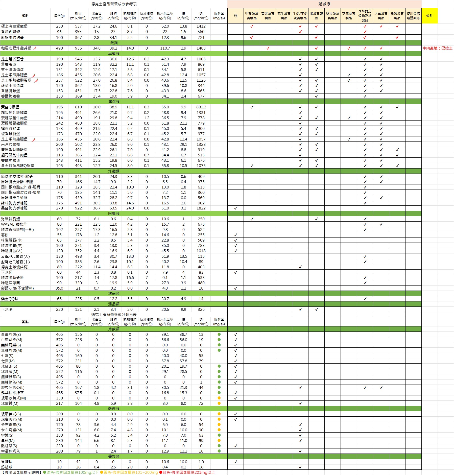 產品營養標示